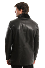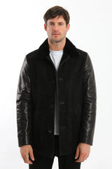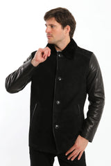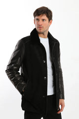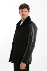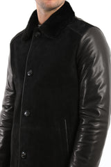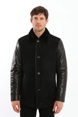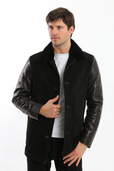 A mid-length men’s winter coat combining smooth-grain leather sleeves with a shearling-finished body for balanced warmth and structure. Designed with a clean button-front profile, this coat delivers dependable insulation, durable materials, and a refined silhouette suitable for everyday winter wear. The mixed-material construction offers both comfort and long-term durability in cold conditions.