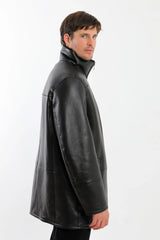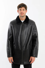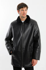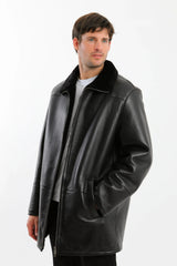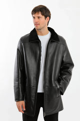 A classic mid-length shearling-lined leather coat designed for dependable winter wear. Crafted from smooth-grain leather with a full natural shearling interior, this coat provides consistent warmth, clean structure, and everyday versatility. The straightforward zip-front design and minimal detailing make it a reliable outer layer for cold-weather use without excess bulk.